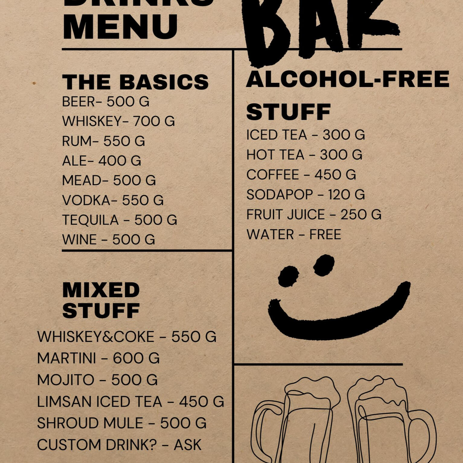 The Sleepy Kitten is a humble RP venue. We are always open, should you wish to rp here! NPC staff are always there. For a staffed RP experience come by Saturday evenings from 9pm EST until 12am EST.*** Sometimes the bar will randomly be open, so look out for shout adverts!
